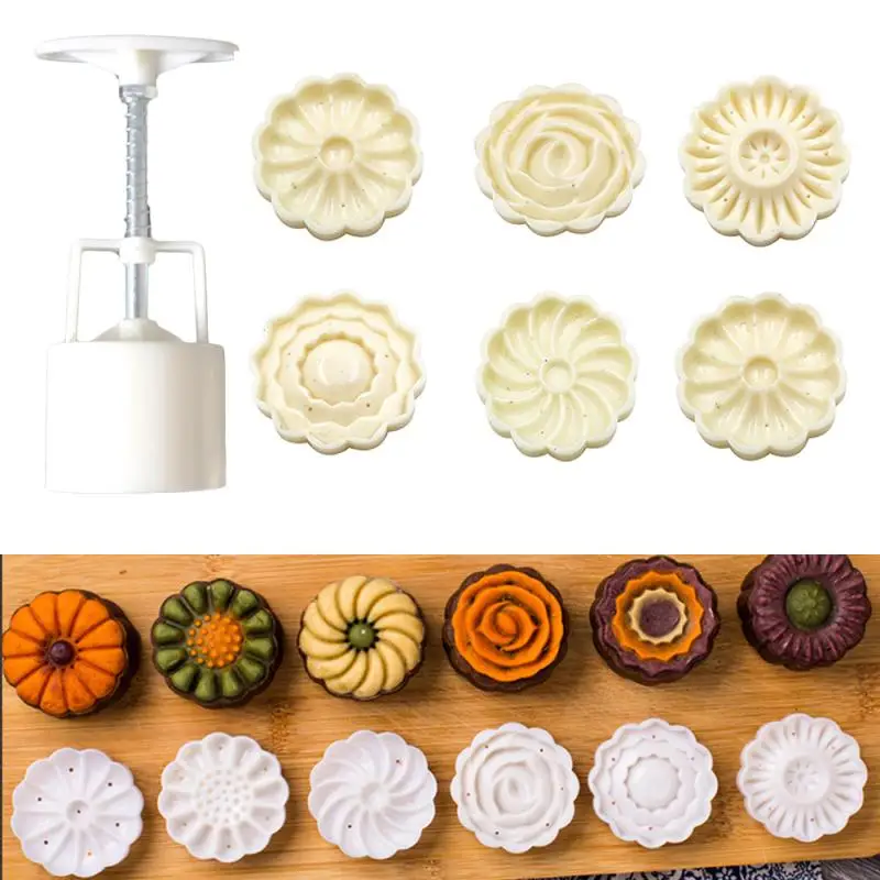 7 шт./компл. 50 г Круглый Цветок Mooncake плесень ручное давление помадка луна торт украшения инструменты резак печенья кондитерский инструмент для выпечки