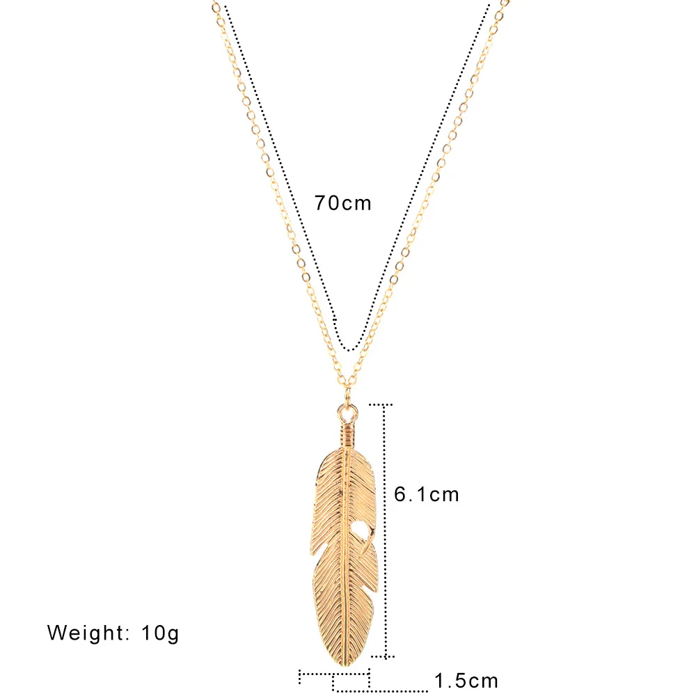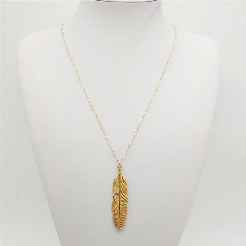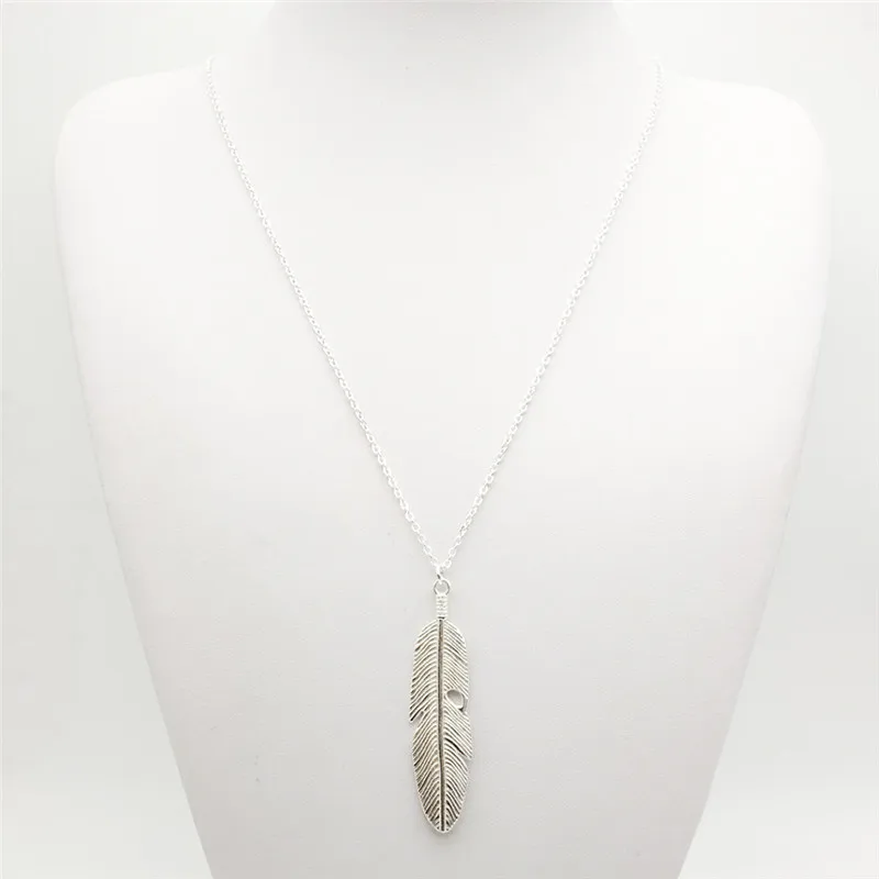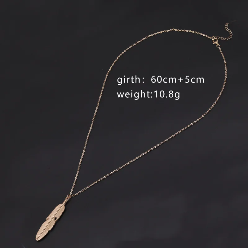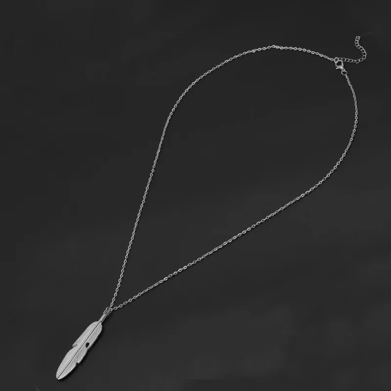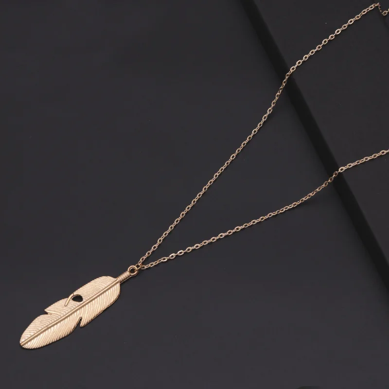 Простое винтажное ожерелье с подвеской в виде пера, длинная цепочка...