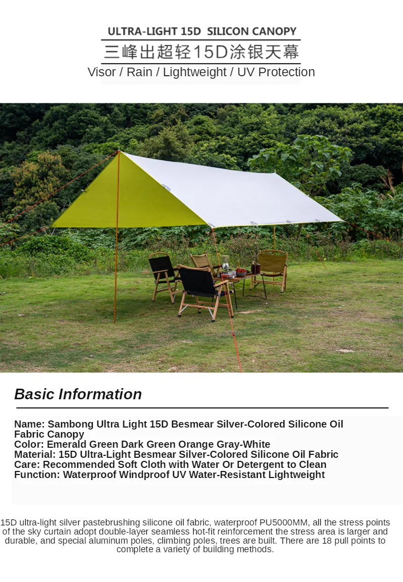 Этот серебристый брезент 15D подходит для кемпинга на открытом воздухе. Сделайте ваше путешествие проще.