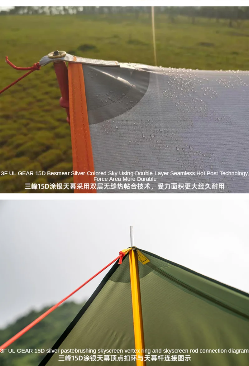 Сверхлегкий гамак 3F UL GEAR, яркий навес 15d, солнцезащитный козырек для кемпинга на открытом воздухе, защита от дождя, пляжа и солнца
