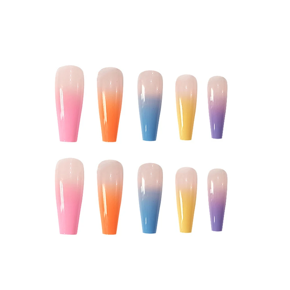 Радужные накладные ногти балерина Омбре, длинный гроб, глянцевые на...