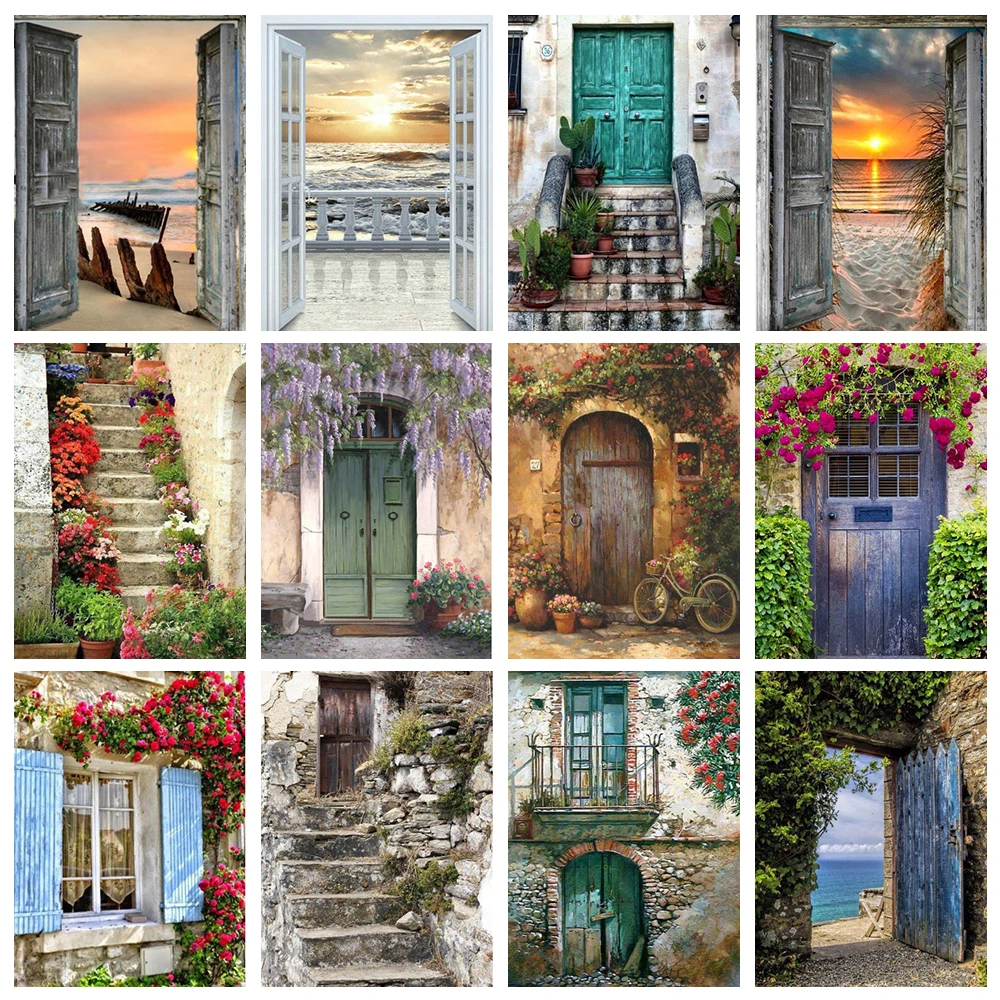 DOHAWIZS 5D алмазная живопись сделай сам, Набор для вышивки крестиком с пейзажем, полноразмерная Алмазная вышивка закат на пляжной двери, домашний декор