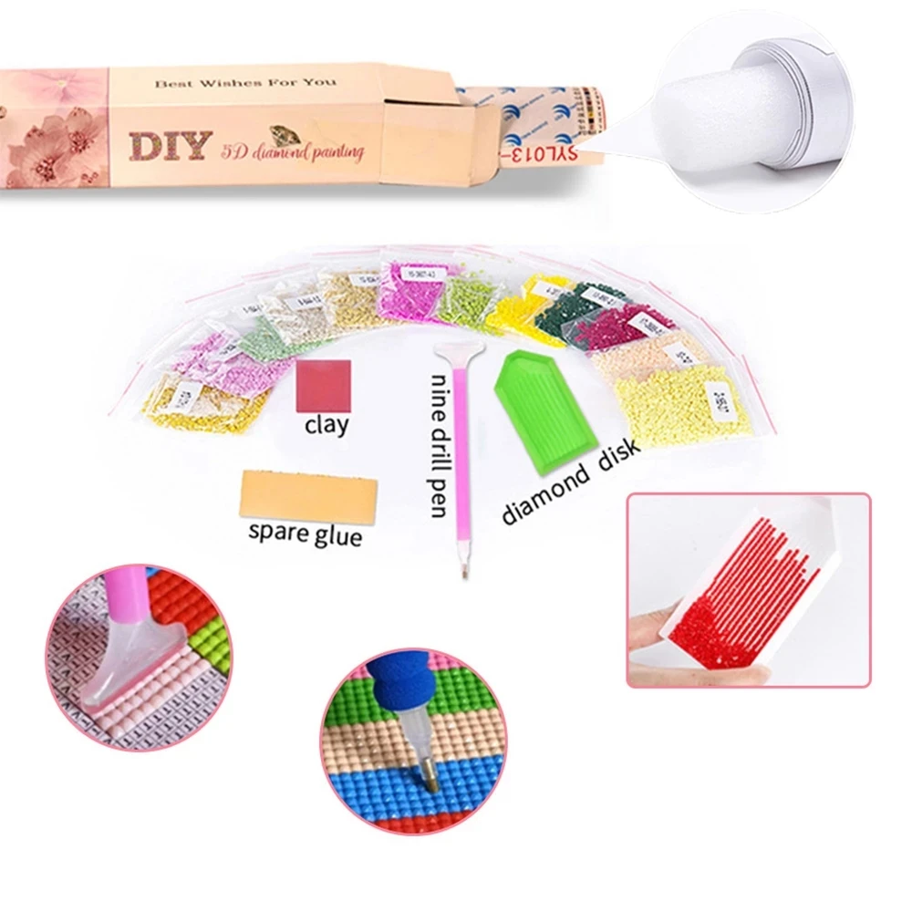 Посылка включает:Полностью сверлильный алмаз, напечатанная ткань, инструменты