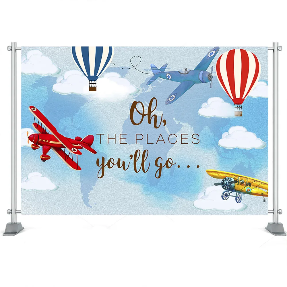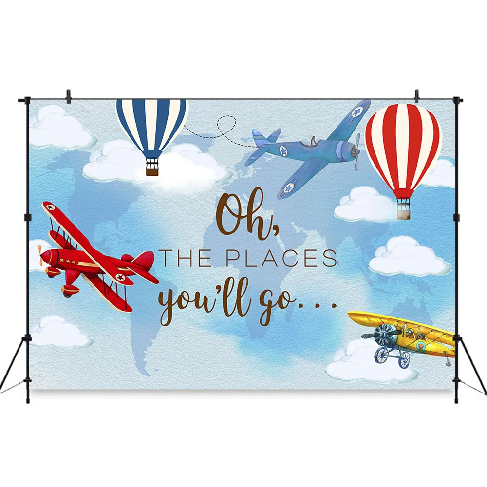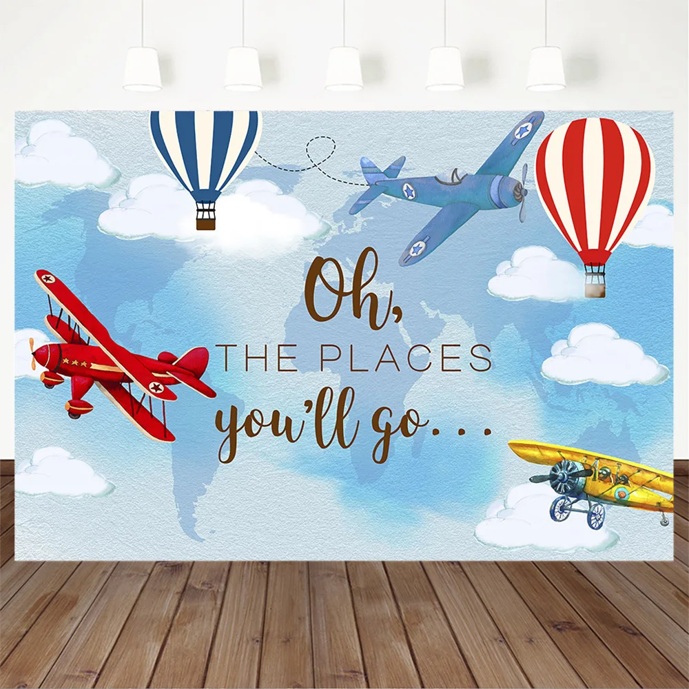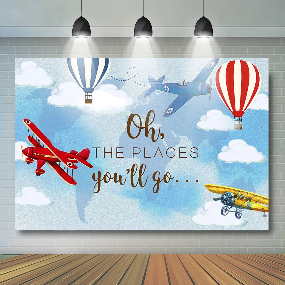 Фон для фотосъемвечерние с изображением детского душа приключений вечеринки воздушного самолета дня рождения вечеринки фоны Oh the you go Air воздушный шар фантазия
