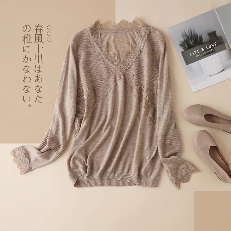 Женский трикотажный пуловер с длинным рукавом и V-образным вырезом