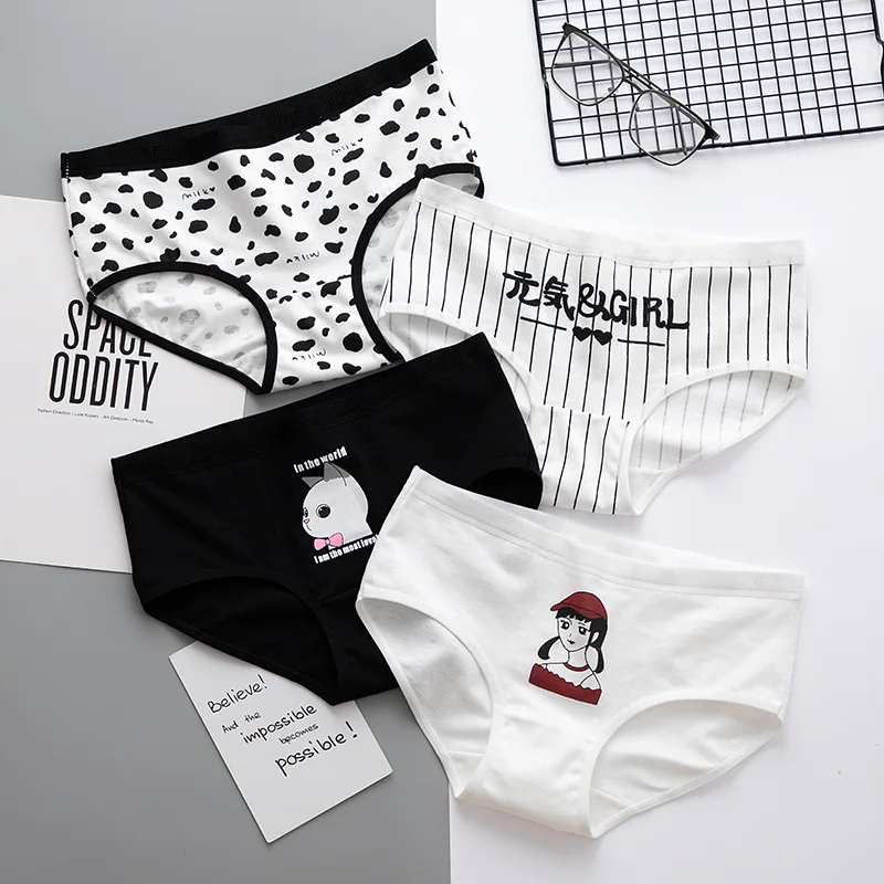 Трусики женские хб с принтом, средней посадки, 3 шт.