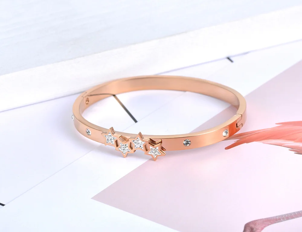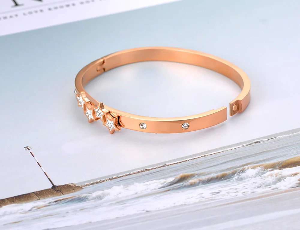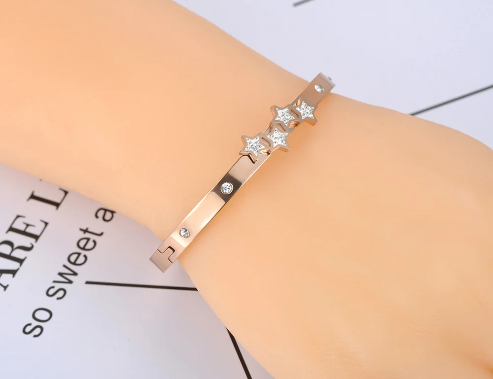 Браслеты Lokaer со сверкающими звездами из нержавеющей стали, браслеты для женщин и девушек, модные ювелирные изделия из розового золота в богемном стиле Стразы B20111