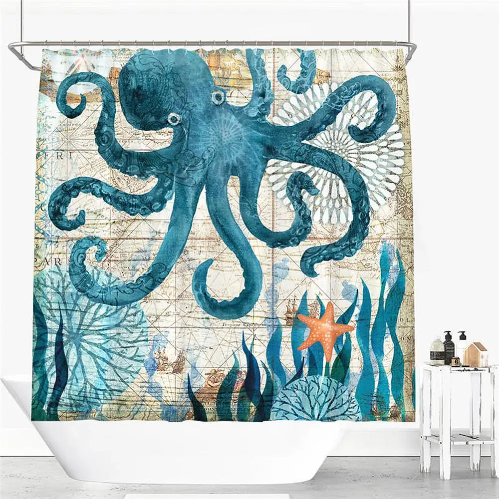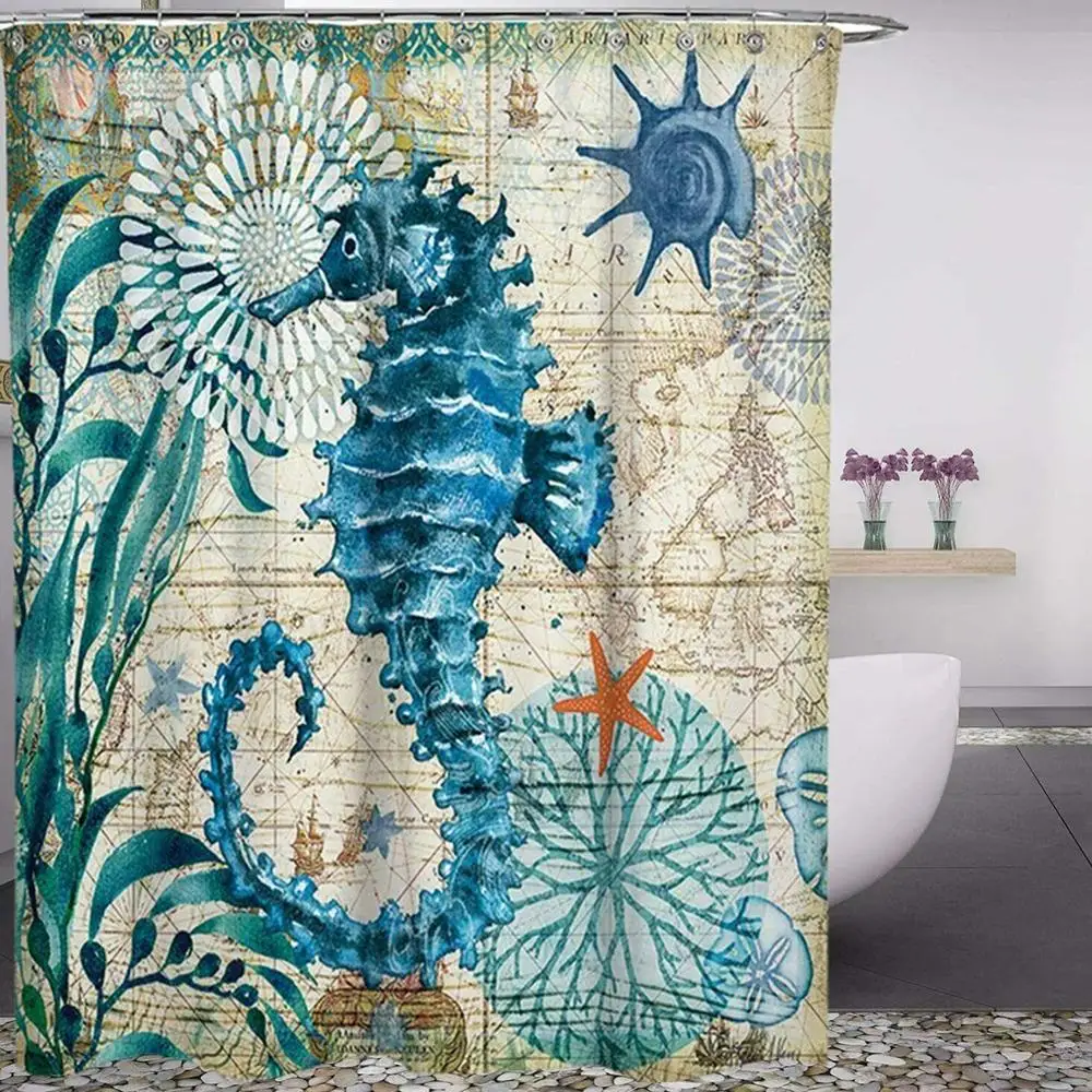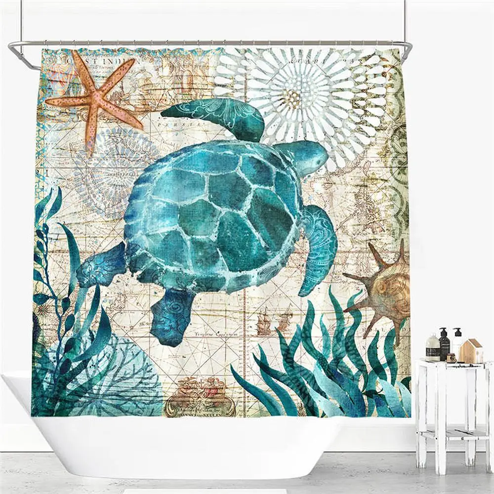 Fabric Shower Curtain Sea Turtle Home Decor Bathroom Accessories Waterproof Polyester Whale Octopus Seahorse Bath Curtains