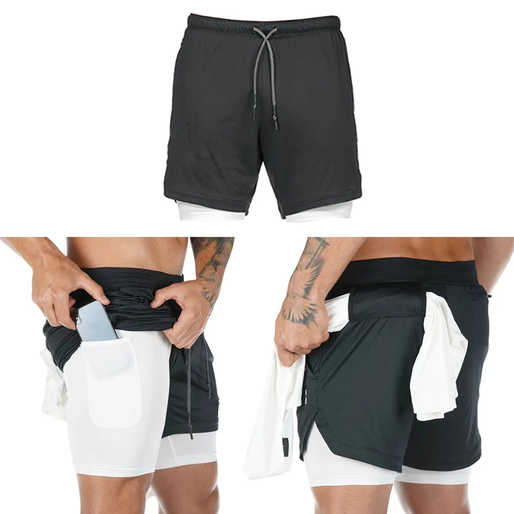 Мужские походные шорты для фитнеса 2 в 1, компрессионные шорты, штаны, нижний слой для тренировок, бега, бокса, одежда
