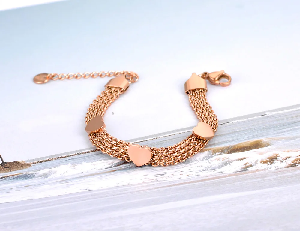 3 шт., многослойные браслеты из нержавеющей стали с подвесками в форме сердца