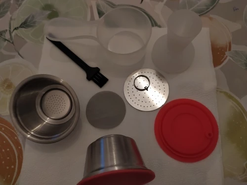 Капсулы действительно работают с кофе машиной Golce Gusto, это надоело постоянно покупать пластиковые. Комплект приехал целый и хорошо запакован. Темпер прекрасен и удобен, как раз под размер капсулы. В комплекте есть сеточка для особо мелкого помола. Единственное, что не понял, это мерная ложка. Она в 2, а то и 3 раза больше чем капсула. Мерная ложка в комплекте идет на 40 мг, а в капсулу влазит 15-20 мл. Вообще не вижу в ней смысла. Так же хорошо бы иметь подставку под капсулу, что бы удобно было трамбовать кофе. У меня для этого подошла досточка.