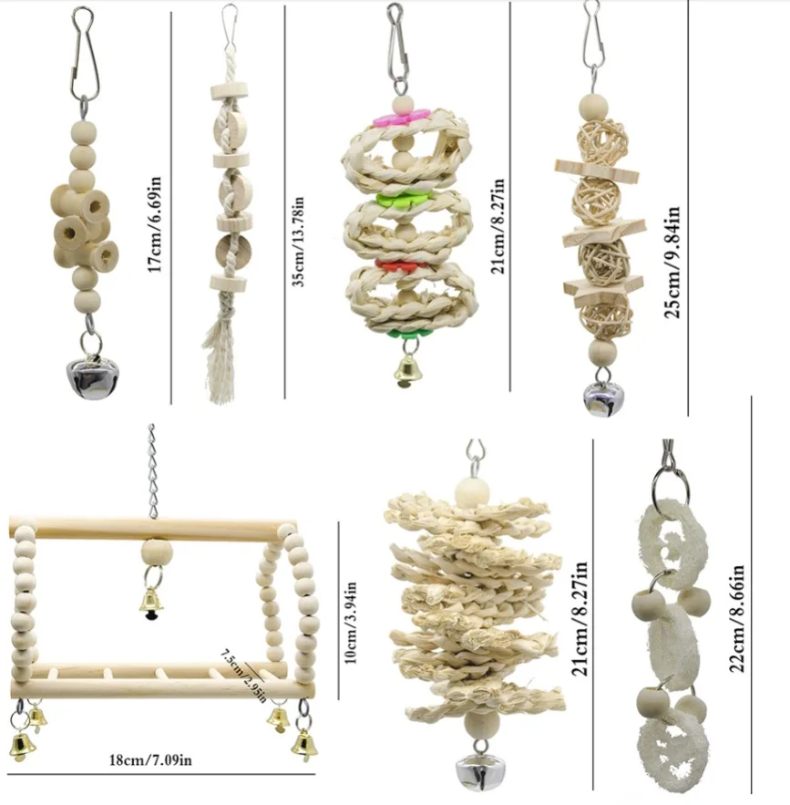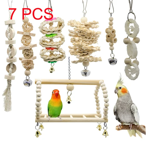 Травмированный тюнг 7 шт Птицы Игрушки для попугая игрушки и аксессуары Перч первичный цвет parkiet speelgoed jouet perroquet