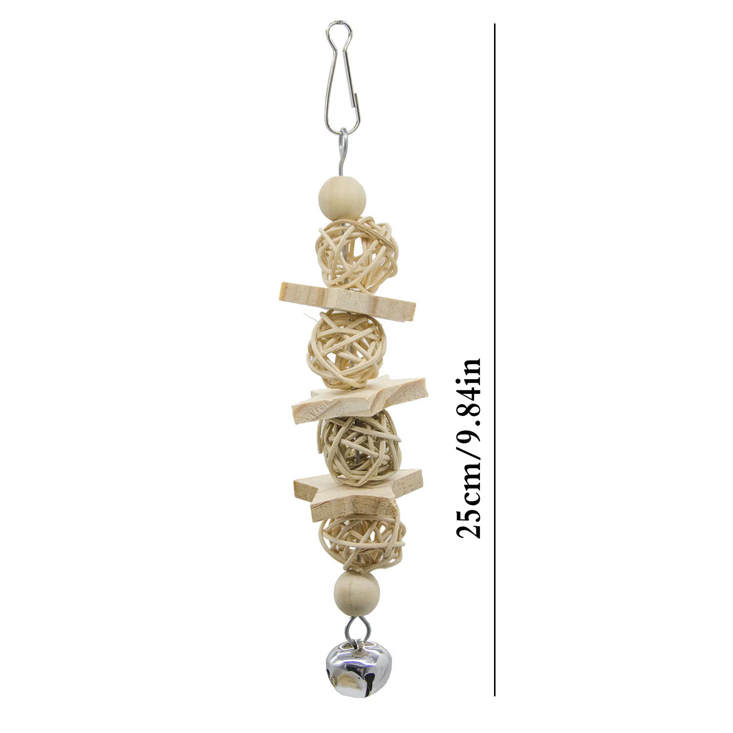 Fficacy/Функция: игрушка для укуса попугая Размер: как на изображении Материал: дерево материал ротанга натуральный хлопок веревка Кукурузный Лист тканый материал Loofah листовая металлическая фурнитура сплав колокольчики немного цвета пластиковая Снежинка