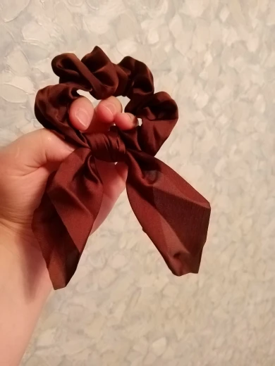 доставка два месяца, посылку бросили в почтовый ящик, трек не отслеживался. Цвет резинки точно такой же как на картинке. Резинка мягкая, нитки не торчат, швы спрятанны, материал скорее всего синтетика, но качественная. Бант с резинки снимается, можно носить как с ним так и без него. Волосы держит туго на 3-4 обороте. Красивый вариант под любую одежду, буду заказывать и в других цветах!