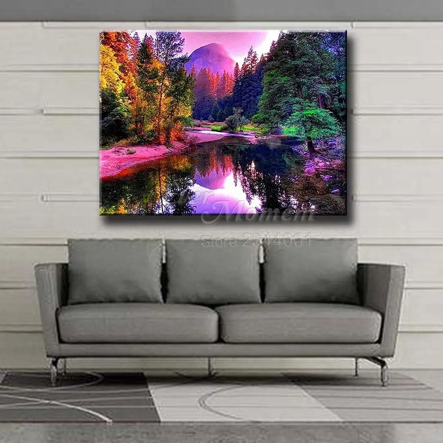 Алмазная живопись с озером, алмазная вышивка сделай сам, полная выш...