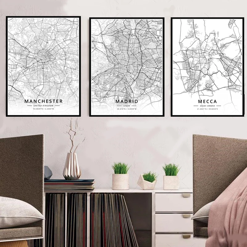 Настенный плакат с картой на заказ, постер с изображением Манчестера и Мекки, знаменитый во всем мире город, дорожный мир, Картина на холсте для украшения дома