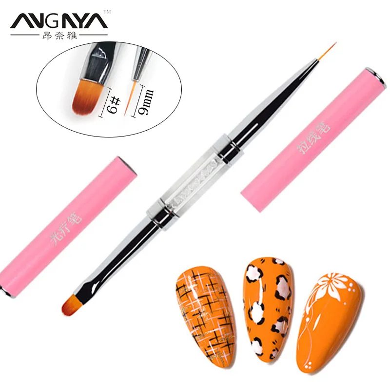 ANGNYA 1 шт. УФ Гель-лак для ногтей кисть 9 мм Цветок Рисунок лайнер ручка розовые металлические стразы Ручка Маникюр двойная головка инструменты для дизайна ногтей