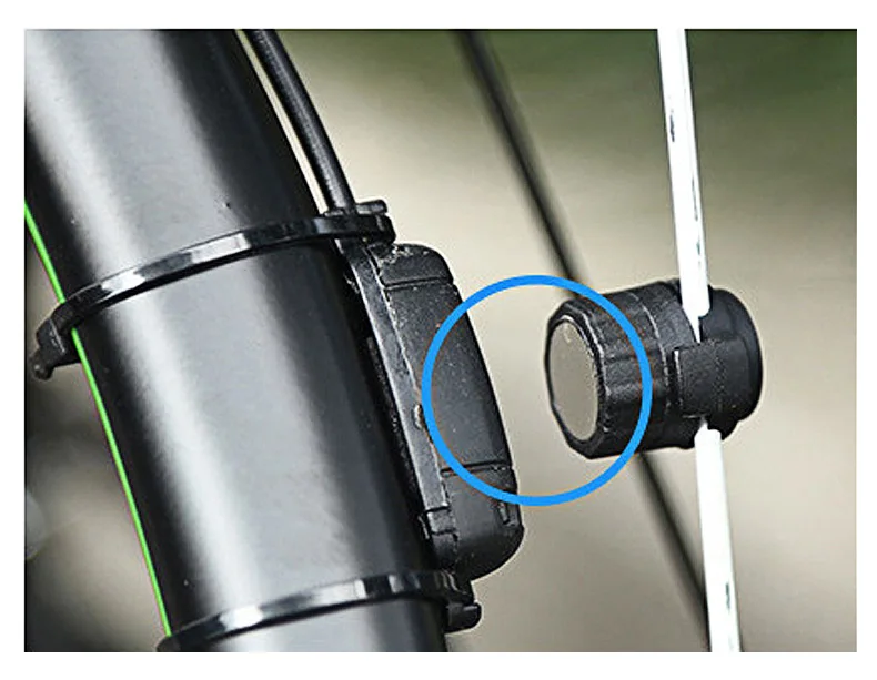 Беспроводной Велосипедный компьютер с беспроводным пусковым устройством нужен 2032 кнопочный элемент. Закрепите магнит с помощью винтов. Магнит может быть выровнен с верхней или нижней частью пускового устройства. Расстояние должно быть 5 мм или около того.