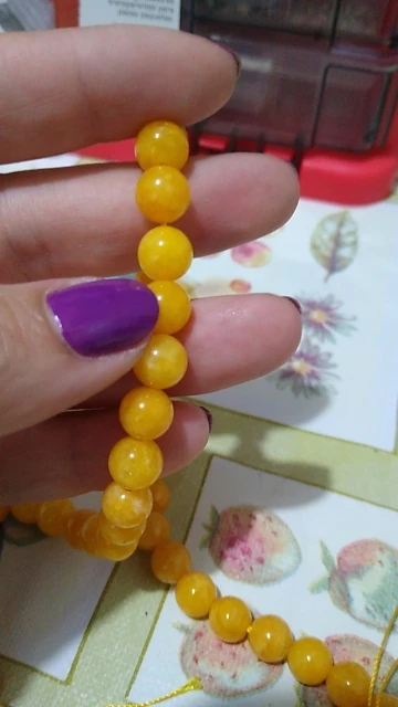 De bestelling is met 25 dagen aangekomen. Mooie donkergele kraaltjes. Mooie heldere warme kleur.