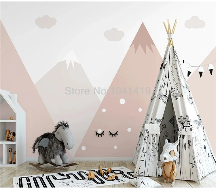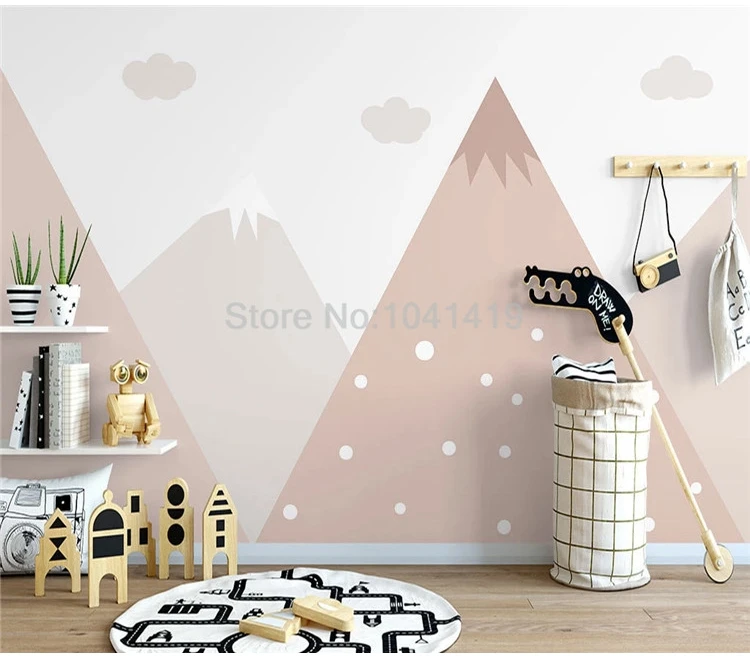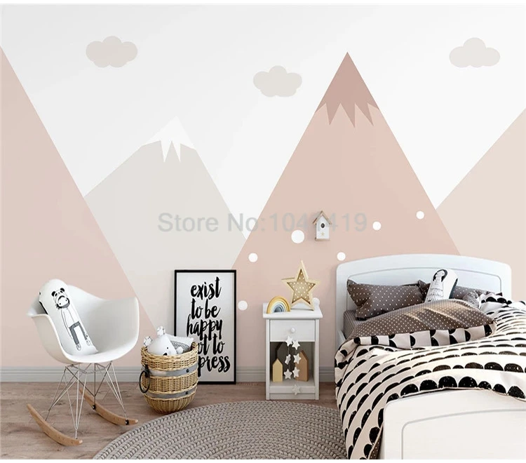 Настенные обои на заказ, самоклеящиеся водонепроницаемые 3D-обои с росписью вручную, розовым геометрическим рисунком гор, пиков детской комнаты