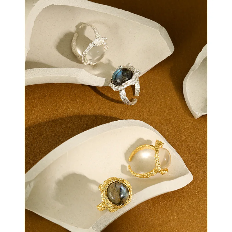 Имя:Ретро 100% Аутентичные 925 пробы серебряные золотые/белые кристаллы/Лабрадорит кольца регулируемые TLJ1282