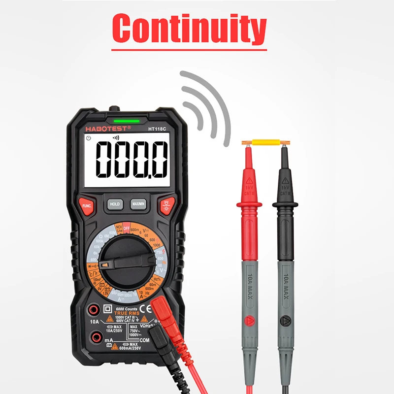 Автомобильный мультиметр HABOTEST True RMS HT118C, профессиональный цифровой тестер емкости, температуры Гц, 1000 В, переменного тока, постоянного тока