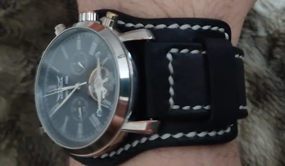 Не знаю что сказать.. И ремешок вроде не плохой. И красивый и вроде даже на кожу похож. Поначалу очень твёрдый, потом мягкий становится. Но это всё ерунда. Есть мать его очень огромный, просто мать его гигантский недостаток у этого ремня - он малой! Он для маленьких людей! Для подростков или женщин. У меня на руке хоть и застегнулся на последнее отверстие, но он давит. Носить так не реально. Если руки не из пятой точки растут, то наколхозите. Если руки под грабли заточены, то это не ваше. Я буду что-то колхозить, как-то удлинять его в районе пряжки. Видимо наращивать путём пришивания кусочка кожи. Пришло быстро.