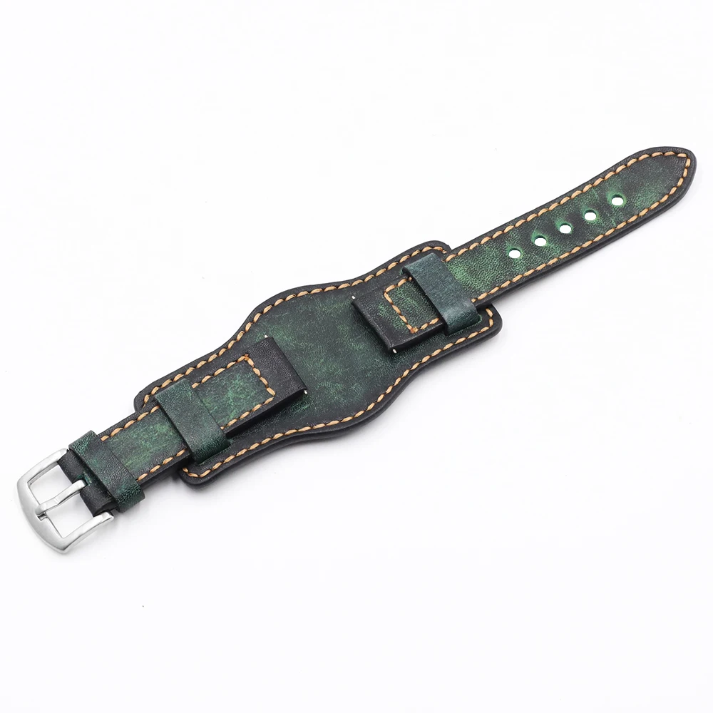 Ремешок кожаный для мужских наручных часов, браслет на запястье в стиле ретро, желтого, синего, черного, зеленого, красного цветов, 20 мм, 22 мм, 24 мм
