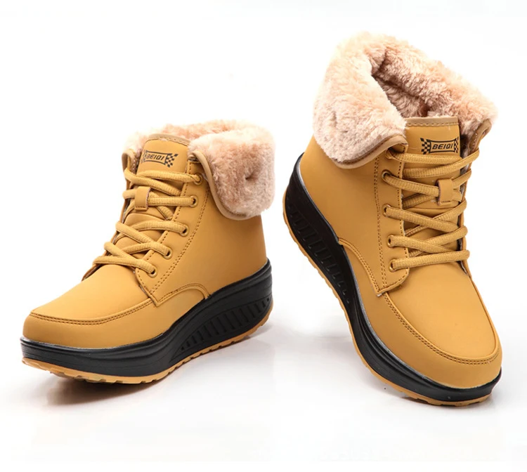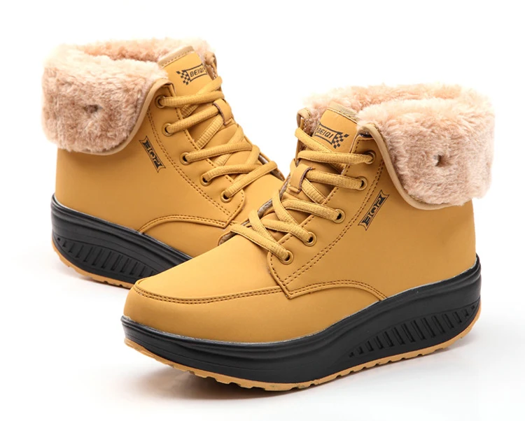 Зимние ботинки на платформе, женские ботинки, Плюшевые Теплые ботильоны на танкетке, зимняя обувь, женские ботинки, женские зимние ботинки, Нескользящие ботинки