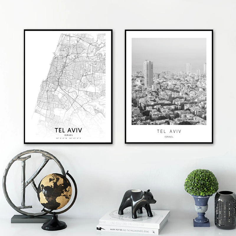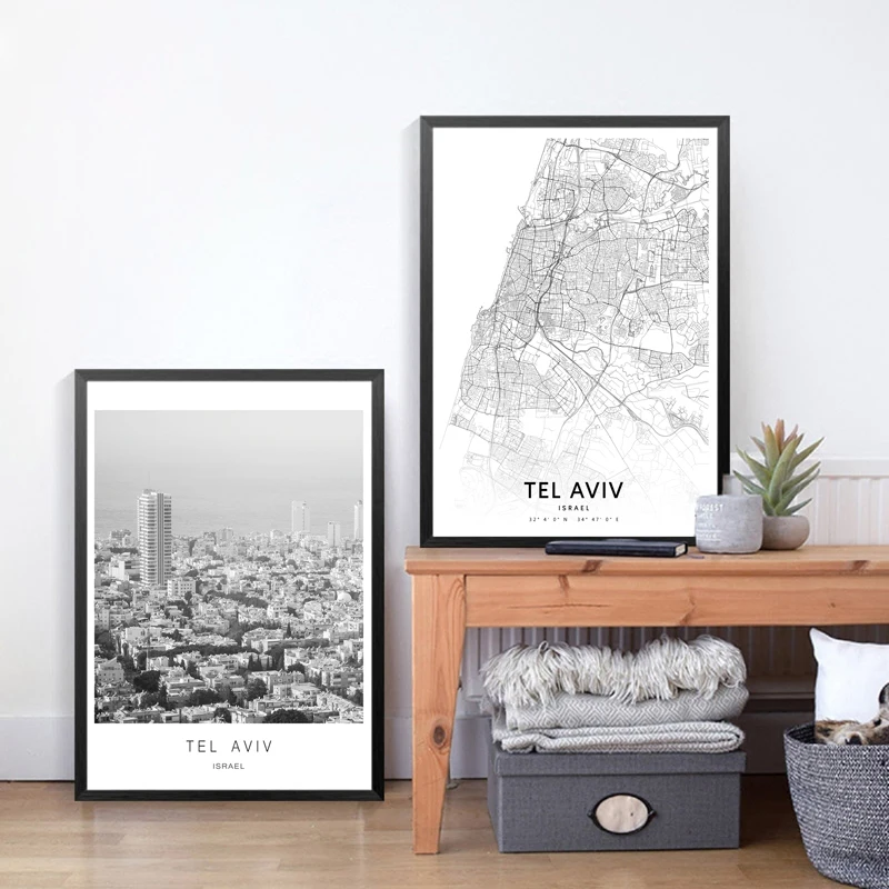 Плакат для фотосъемки с изображением города в Тель-Авив, настенная Картина на холсте с изображением карты города в Тель-Авив, декор для гостиной