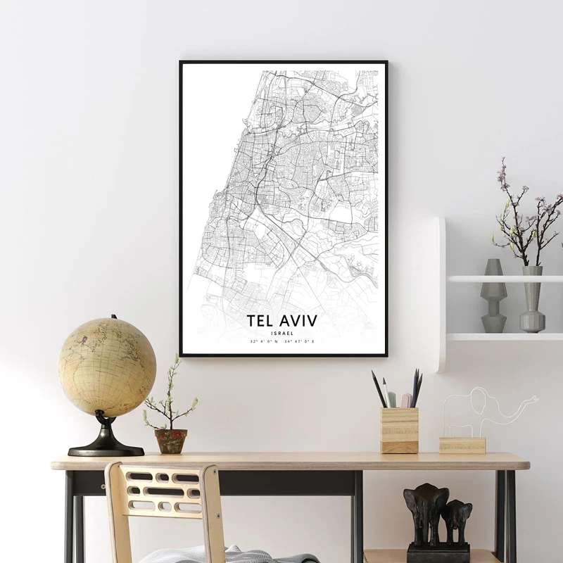 PurposeTel Aviv City Map Art Painting Wall Pictures Home Decor