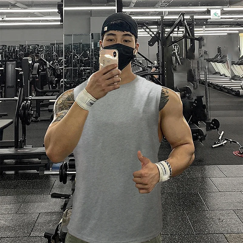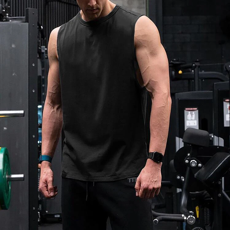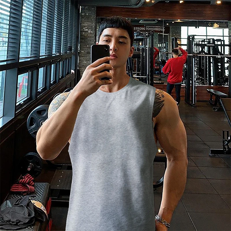Мужской Хлопковый жилет для бега, Спортивная футболка свободного кр...