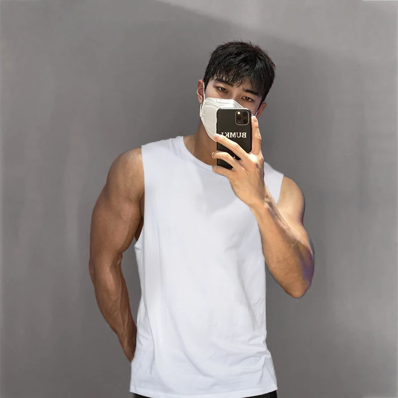 Майка для фитнеса мужская, летняя, 100% хлопок, с вырезами по бокам