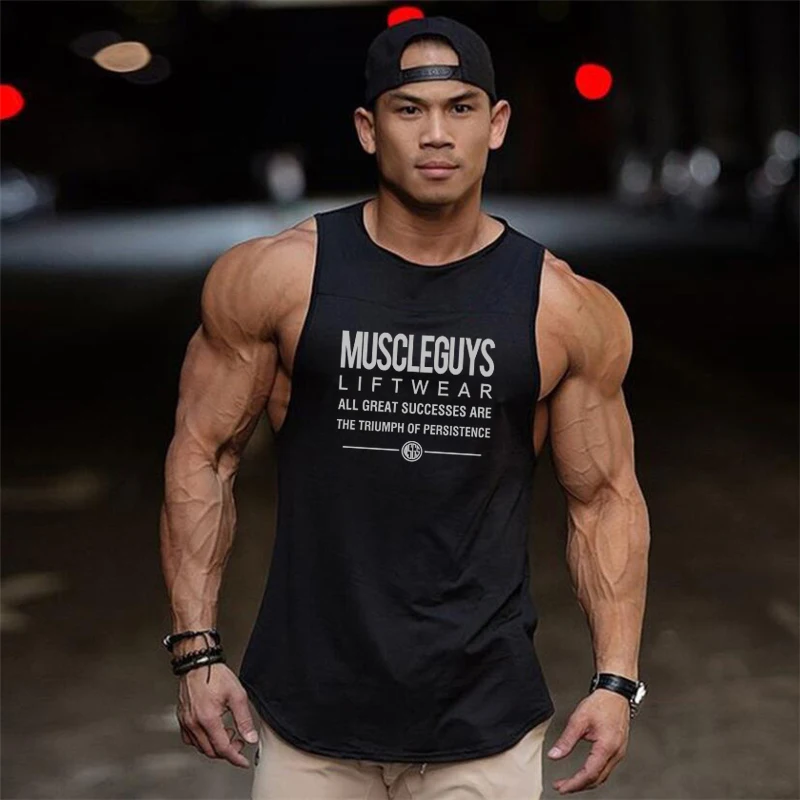 Майки мужские, хлопковые, с буквенным принтом, для тренировок