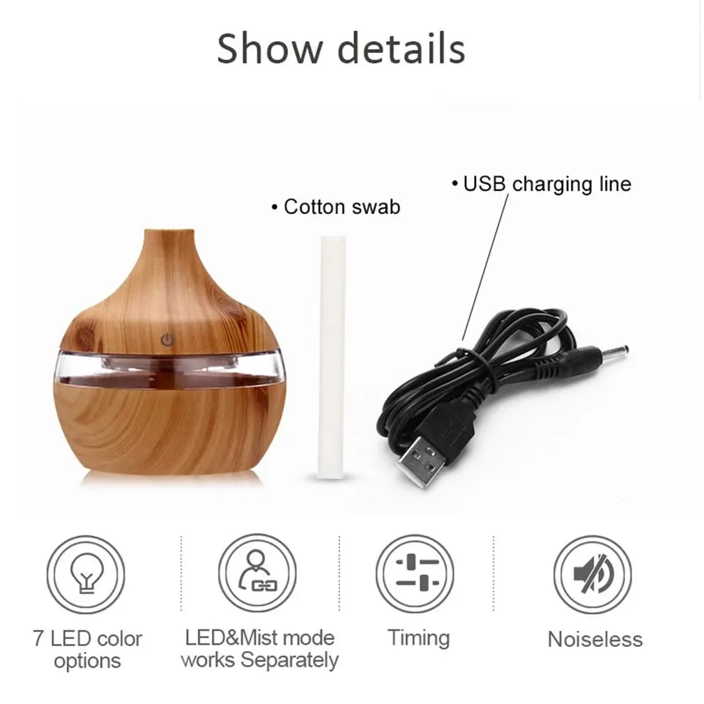 1. Декоративный предмет. Этот диффузор эфирного масла со стильной отделкой из древесного зерна идеально сочетается с любым декором в вашем офисе или доме, прекрасный блок с ароматом (если вы добавите несколько капель масла в Него) делает вашу жизнь красивой и здоровой2. Безопасность и автоматическое выключение. Будет автоматически отключен при исходе воды. Не беспокойтесь о сжигании3. Идеальный ночник. Этот аромадиффузор имеет Режимы освещения, чтобы создать расслабляющую и романтическую атмосферу.