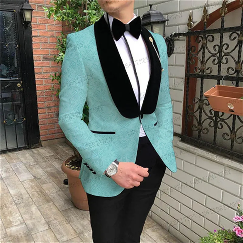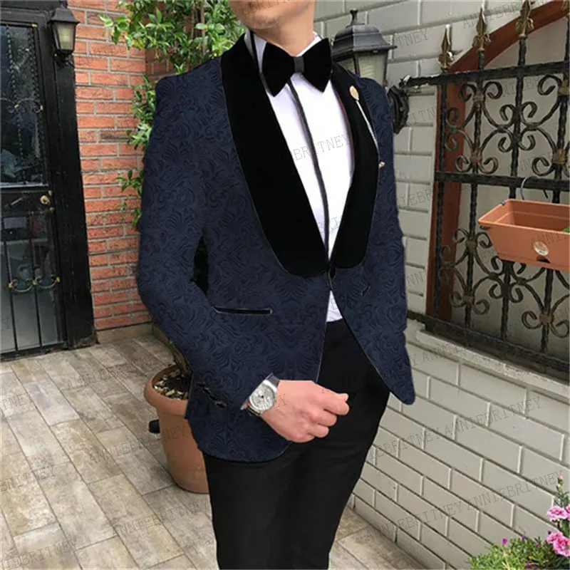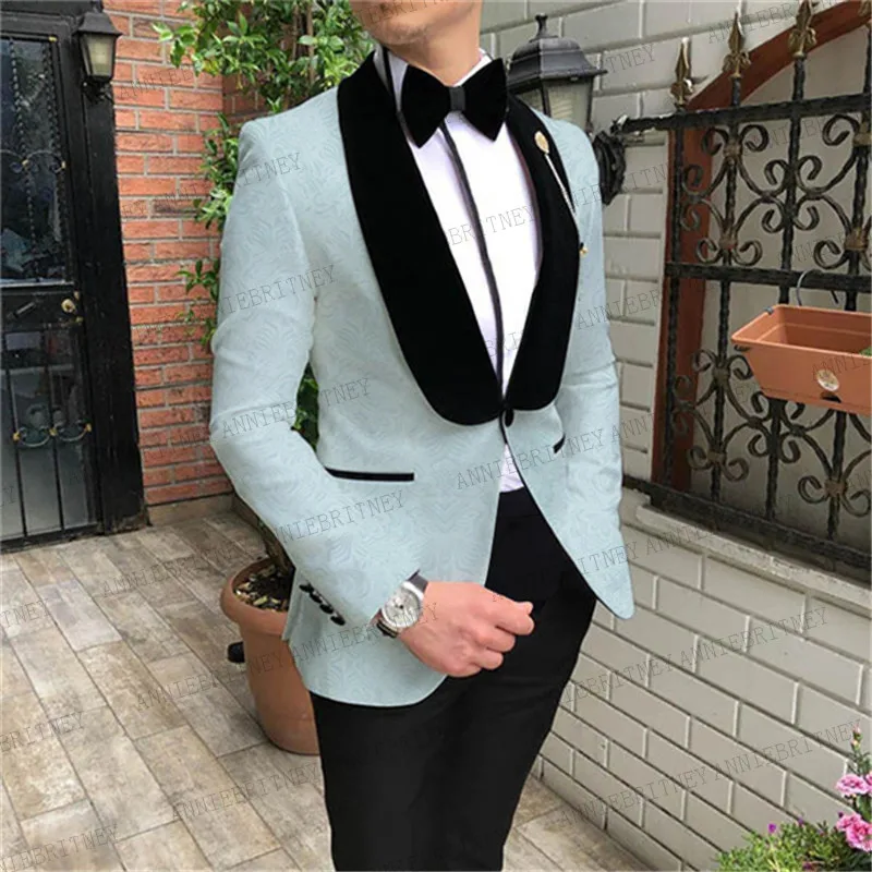 Мужские костюмы из жаккарда серебра 2020 пробы, мужские костюмы из двух предметов, строгие смокинги больших размеров для жениха, облегающий блейзер с брюками