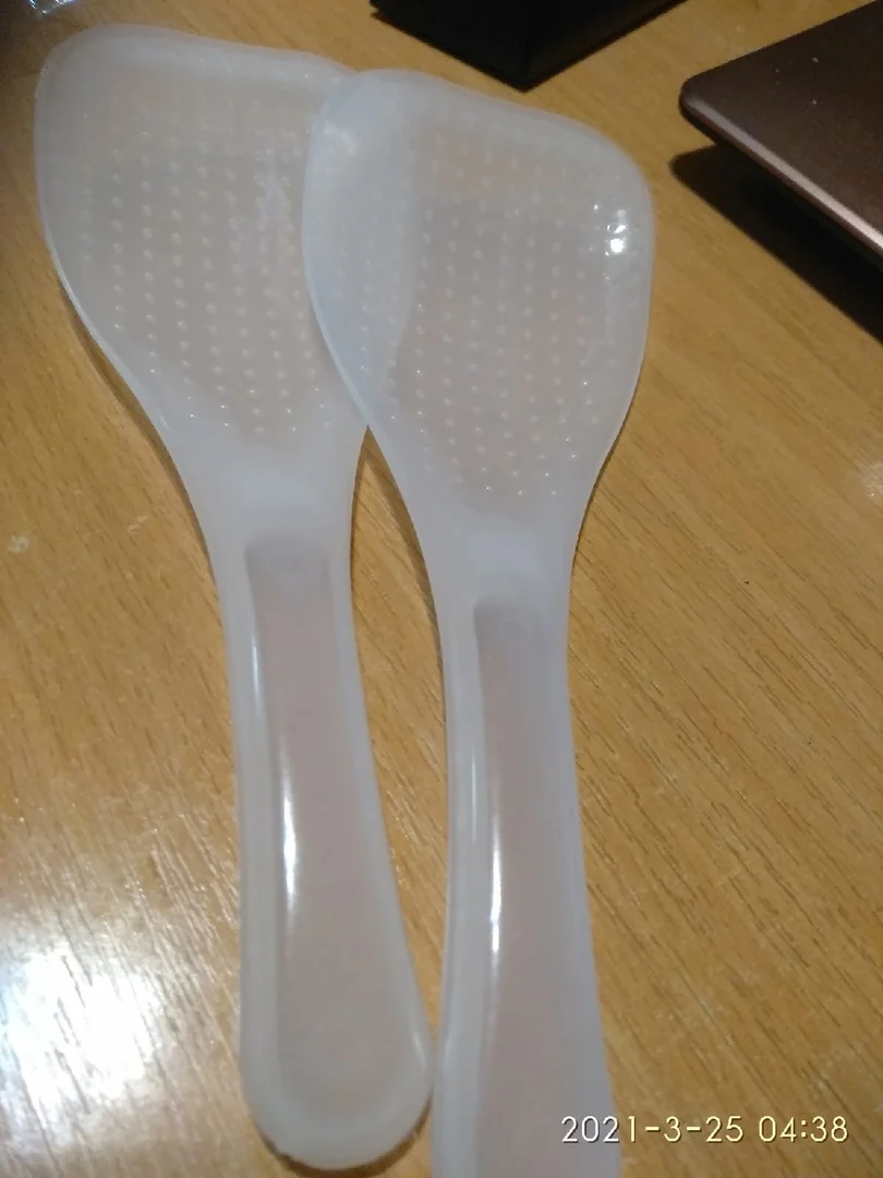 Прибыли быстро. Вообще для риса, типа на них не налипает, ..может быть, пока рис не варила. Мне больше нравится мысль для салатов, короткие, прочные, а то у нас только "лошади" в 30 см продают, типа на ведёрко салата сразу. Есть зазубрины по краю ложек (отполируем), царапаются. А так в целом форма и материал класс! Только, бог его знает, в кипятке этот материал ..ничего.. воде не отдаёт?