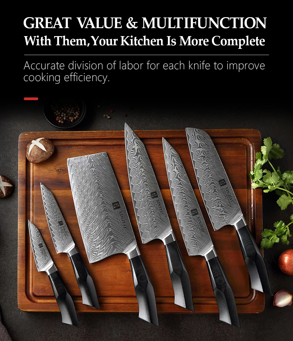 Набор ножей из дамасской стали XINZUO Feng Series 6PC