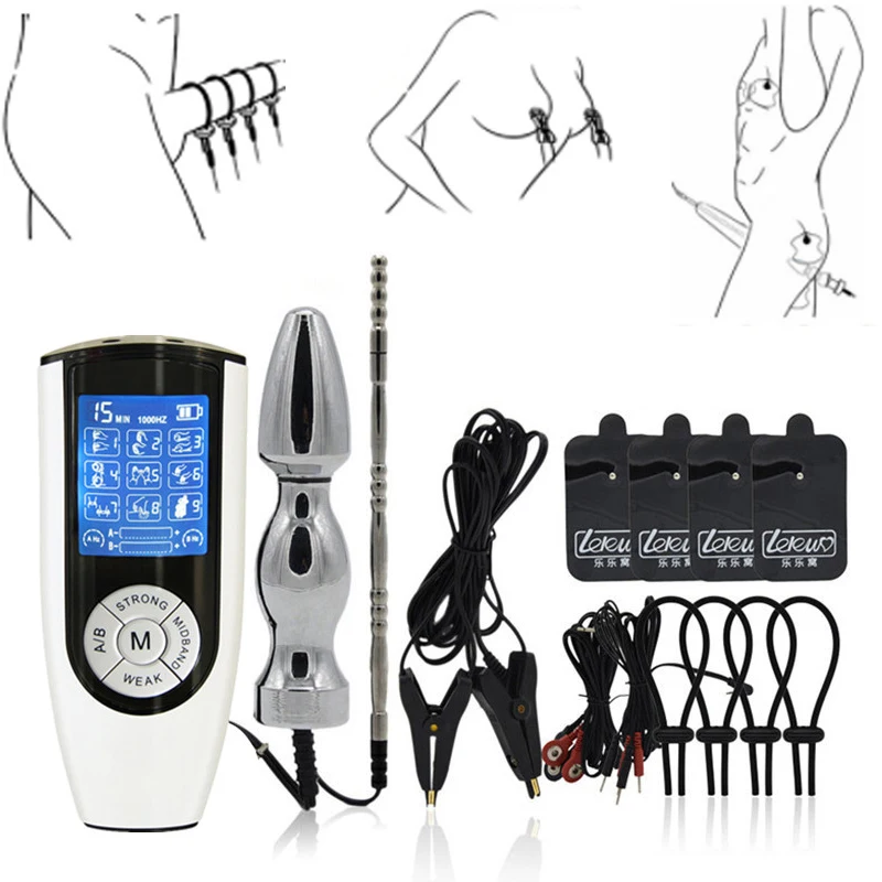 Зарядка через USB Электрический шок Вагина Анальная пробка массаж тела катетер звуки соски зажимыколодки БДСМ медицинские тематические Секс игрушки