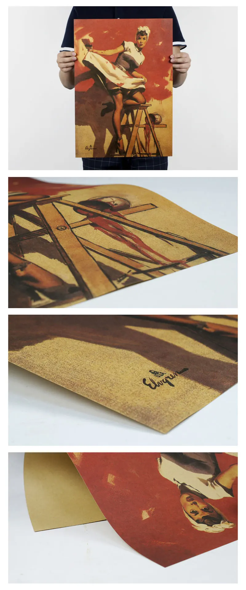 AIMEER белое платье девушка картина стена высокие каблуки дома ретро крафт-бумага постеры Бар Кафе Декор настенные наклейки 51*36 см