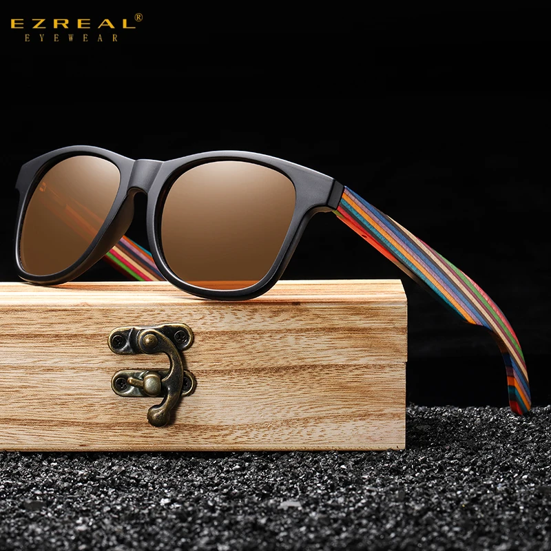 EZREAL Новые поступления черные деревянные поляризованные солнцезащ...