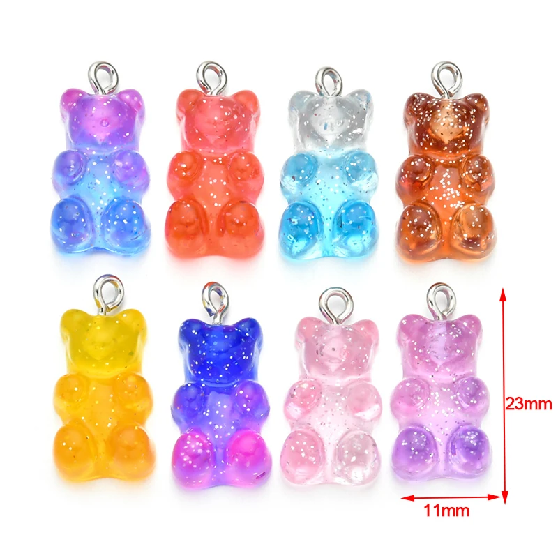 10 шт. новые милые Подвески из смолы с милым медведем, смешанные цвета для женщин и девушек, Мультяшные ювелирные изделия, сделай сам, фурнитура для изготовления сережек, оптовая продажа