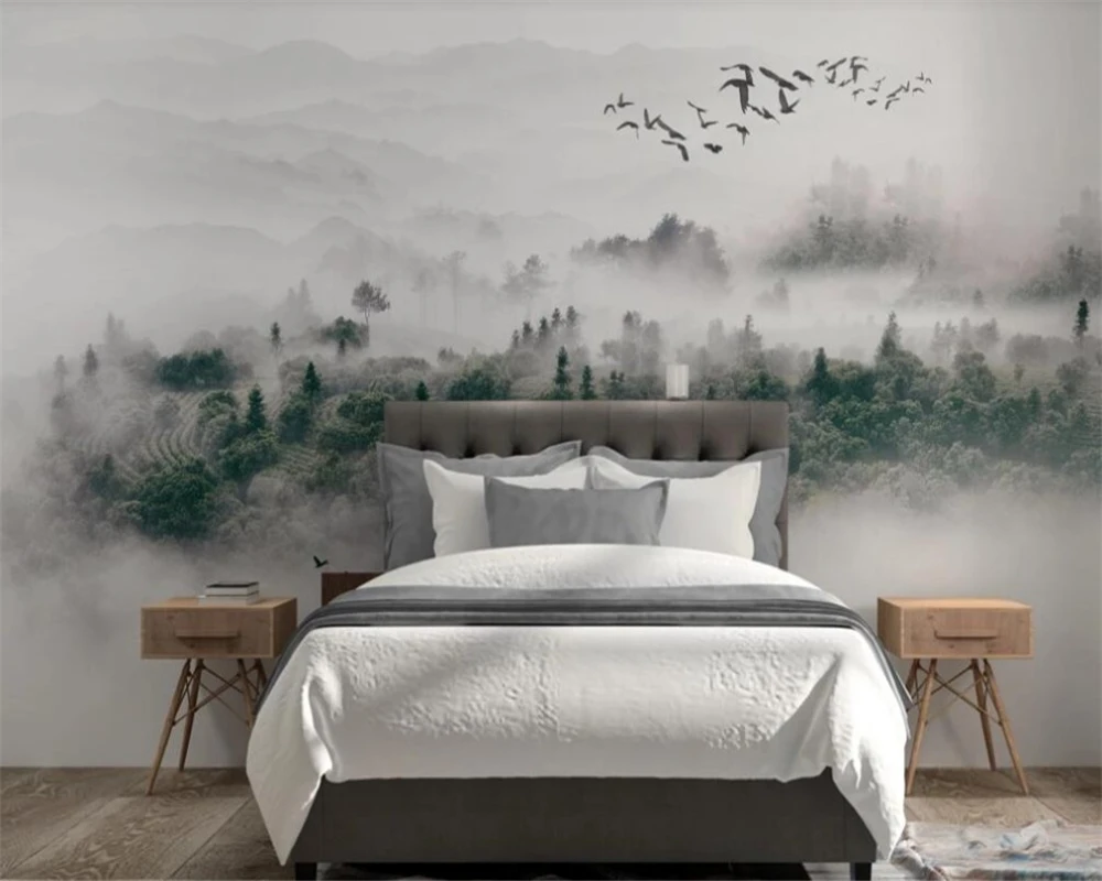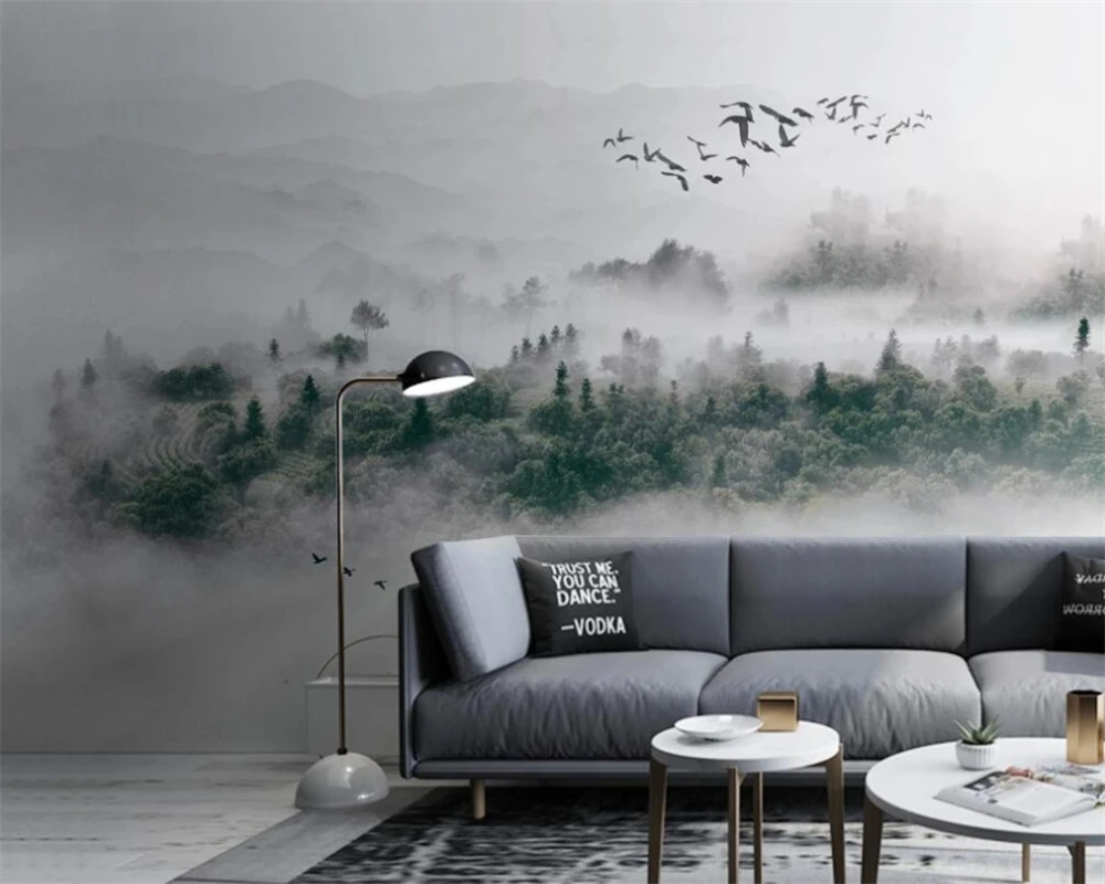 Фотообои beibehang на заказ, современный минималистичный скандинавский стиль, туман для птиц, сосна, лес, облако, туман, фон для телевизора, Papel de Pared