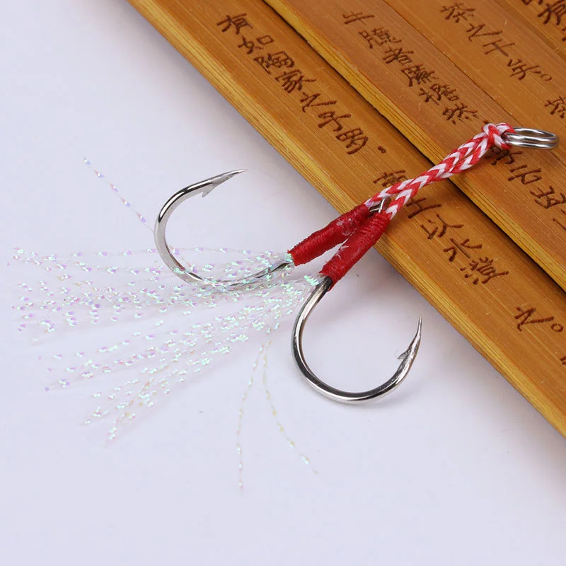 Рыболовный крючок с 3 звеньями, рыболовный крючок с бородкой, двойные рыболовные крючки с нитью и перьями, рыболовная приманка из высокоуглеродистой стали для медленного джиггинга
