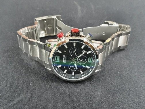 Часы очень красивые и элегантные, они выглядят как Омега, и материалы выглядят хорошо, металлический ремешок немного легкий. Время работы нормальное, хотя это немного запутанная функция, и он измеряет за считанные секунды, что вычитает видимость.