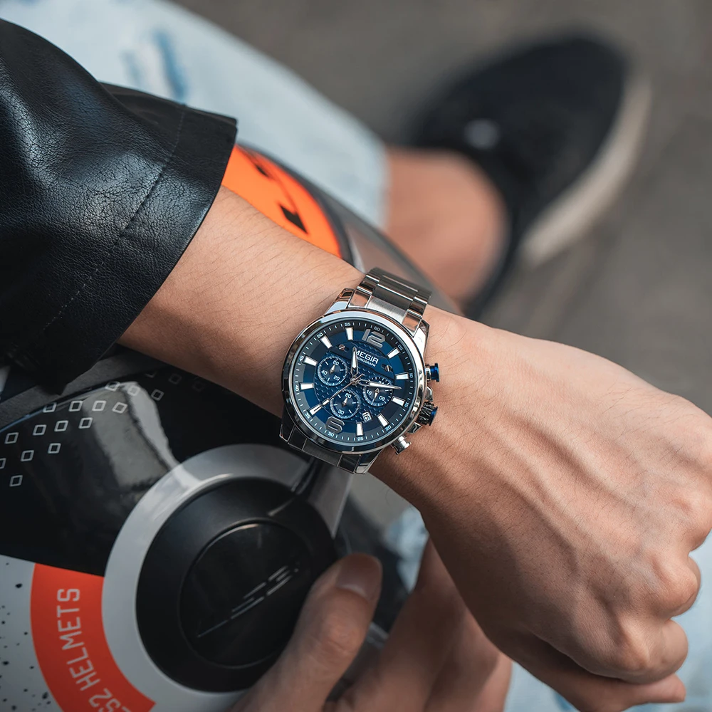 Часы мужские кварцевые с хронографом, блестящие, водонепроницаемые