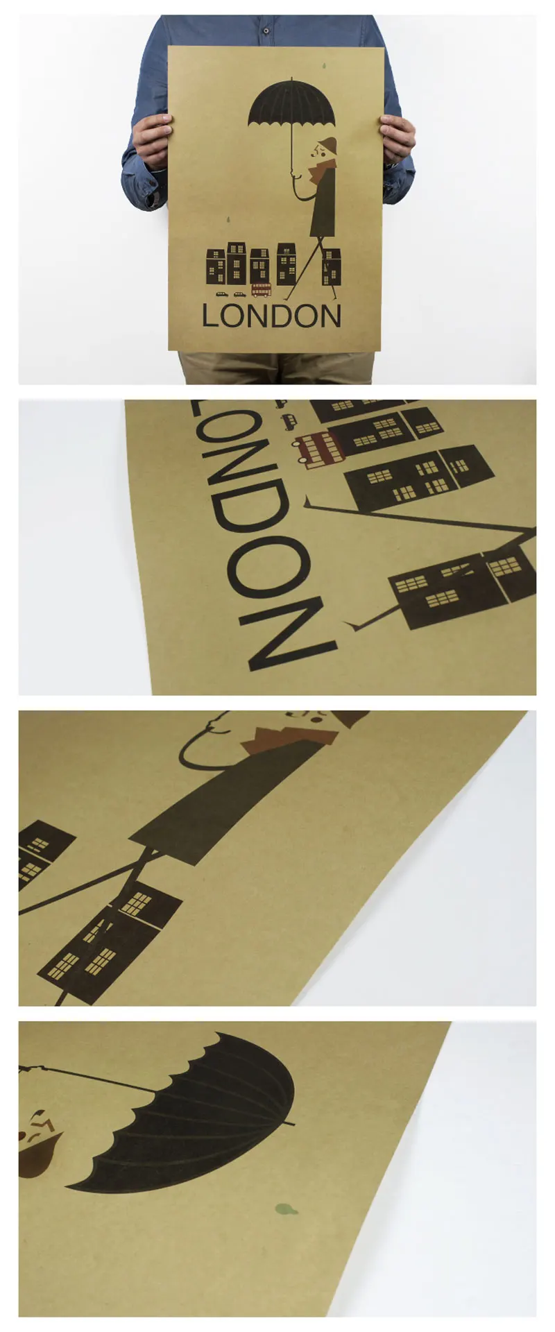 AIMEER простой рисунок Лондона под дождемпростой и креативный иллюстрационный Декор Картина на крафт-бумаге Ретро плакат 51*36 см