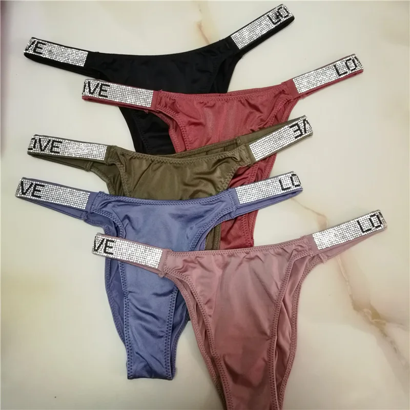 Стринги женские, с заниженной талией, с Т-образной спинкой, с надписью, бриллиантами, стринги, трусики для фитнеса, трусики в форме треугольника