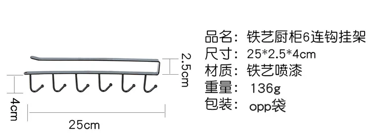 Кухонные крючки, железный Однорядный крючок для кружек, чашек, быто...