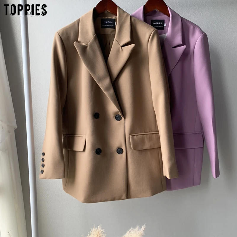 Женский Длинный блейзер TOPPIES 2021, двубортный пиджак, свободное однотонное пальто оверсайз, Официальный блейзер